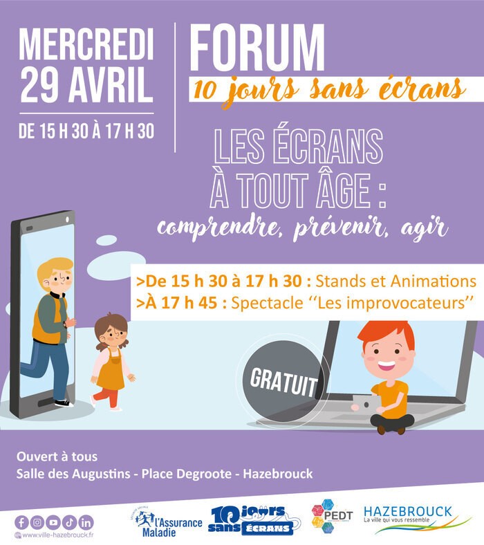 Dans le cadre de l’opération nationale "10 jours sans écrans", la Ville d'Hazebrouck vous invite à un forum sur le thème :“Les écrans à tout âge : comprendre, prévenir, agir”.